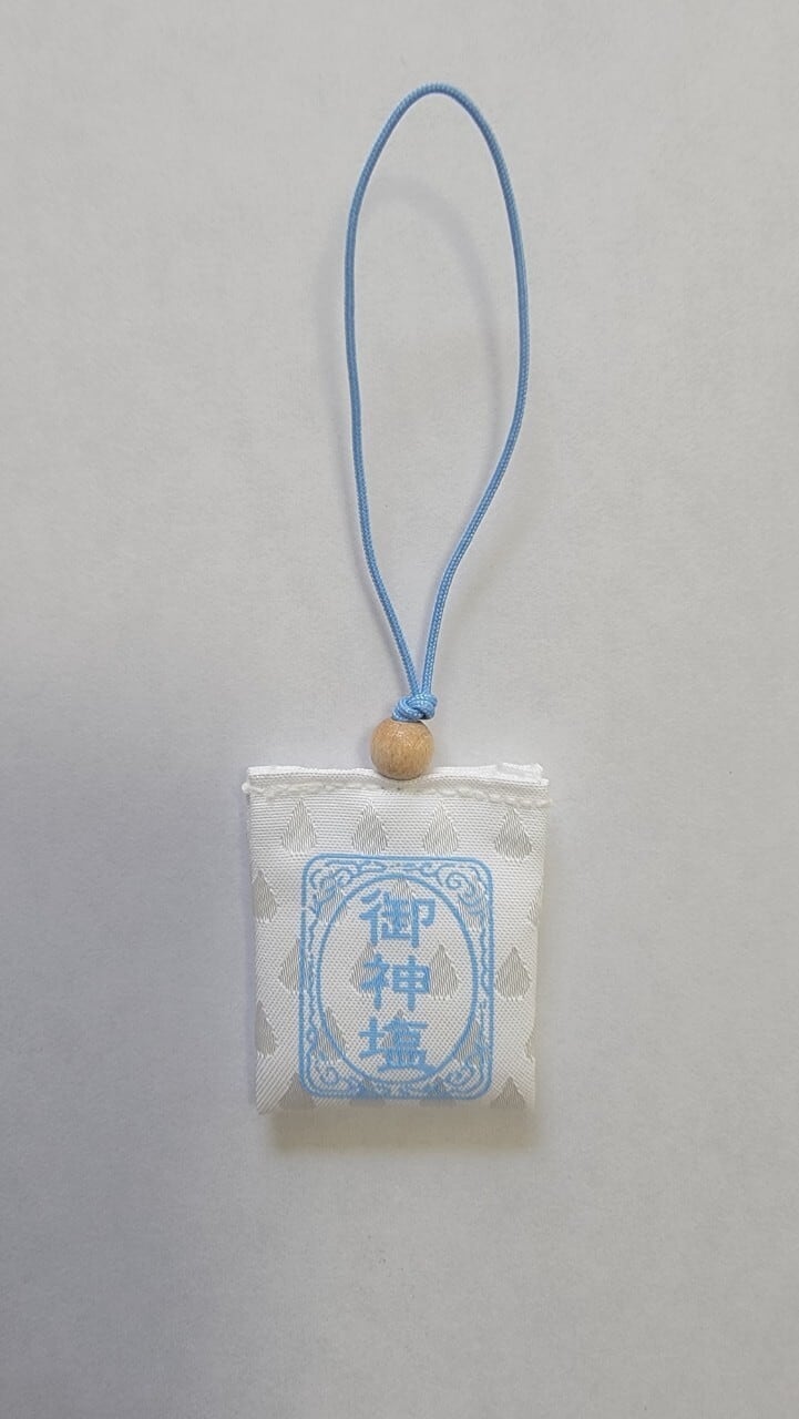 貴船神社の塩守りです。貴船神社は水の神を祀ることで有名な京都の神社で、この塩守りは特に清めの効果を持つとされています。神聖な塩が入ったお守りは、邪気を払い、環境を浄化する力があると信じられています。美しい白地にピンクの刺繍が施されたデザインで、持ち歩くことで日常生活の中で清浄と幸運をもたらすとされています。